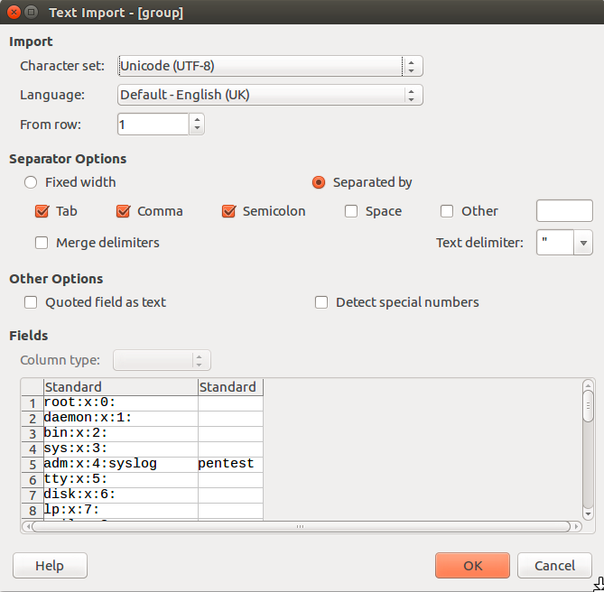 It should be noted that upon initial import the user will be prompted for an action as shown within the following screenshot (showing the output of /etc/group, in this instance).