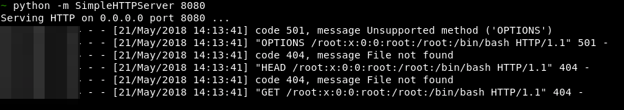 Our attacking system had Python’s SimpleHTTPServer running, so when the malicious file is opened on the victim system, the requests were made and hence received by our server.