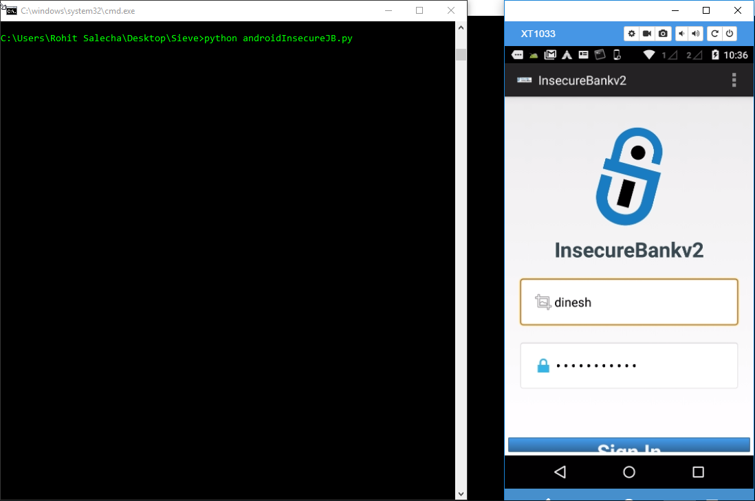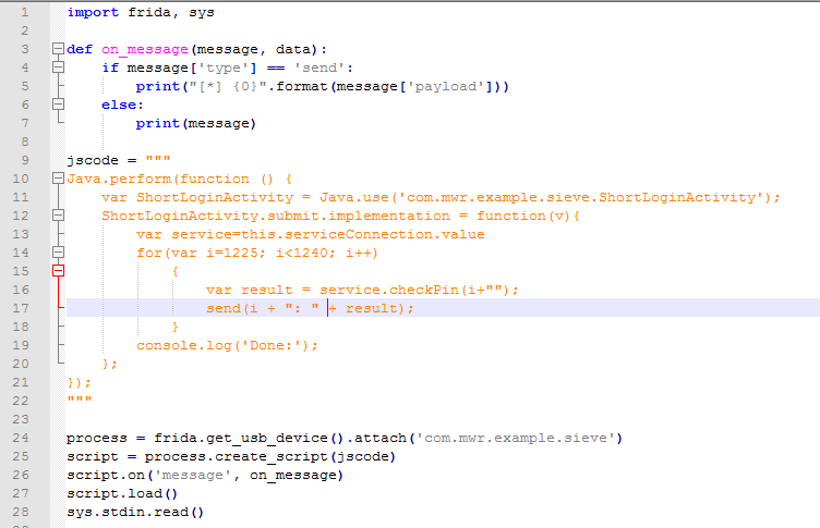 The Sieve app has a feature in which if you push the app into background and then try to bring it back, it’ll ask for a Pin to be entered. Using the below script, it is possible to bruteforce this pin and then gain access to the application. The script can be downloaded from here.