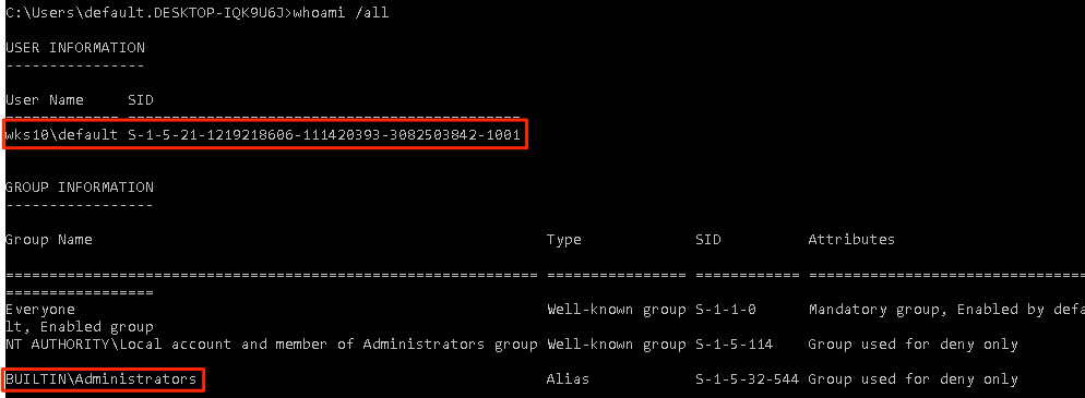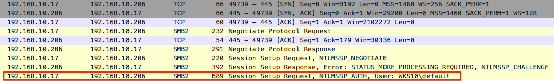 In the following example the host is a default installation of Windows 10 and the victim user currently authenticated to 192.168.10.17 is a local administrator user named default.